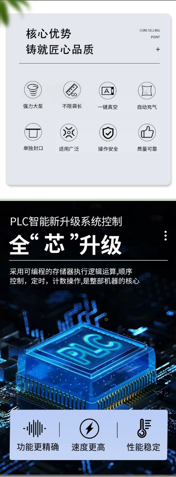 • 抽真空效果穩定,能有效隔絕空氣、水分,防止產品氧化、霉變、生銹,延長保質期和儲存周期。