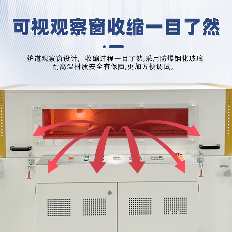• 可視窗設(shè)計(jì):設(shè)備設(shè)有可視窗,能夠讓操作人員清晰地觀察到收縮過程,便于及時(shí)發(fā)現(xiàn)和調(diào)整包裝過程中出現(xiàn)的問題,確保包裝質(zhì)量。