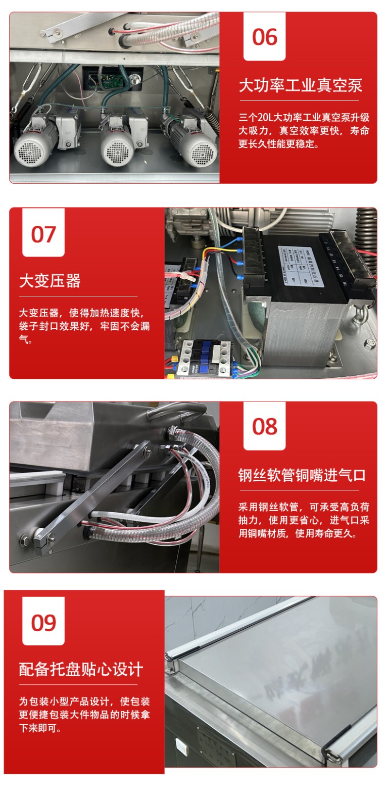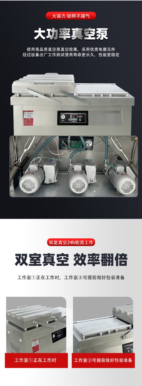 同等規格下,雙室機的單位時間包裝量是單室機的 1.5-2 倍,尤其適合中小型加工廠的連續批量生產。
