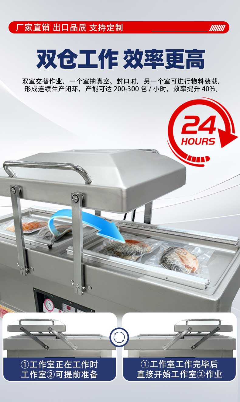 - 高效包裝:兩個真空室可交替工作,當一個真空室進行抽真空和封口操作時,另一個真空室可進行下一批產(chǎn)品的擺放等準備工作,大大提高了包裝效率,減少了整體運作時間3。