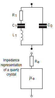 在電學上,石英晶體可以由圖1的等效電路表示,其中串聯組合R1,L1和C1表示壓電效應對阻抗的貢獻,C0表示電極之間的分流電容以及任何雜散電容.電感L1是石英質量的函數,而電容C1與其硬度相關聯.電阻R1由石英和安裝裝置中的損耗引起.等效電路的參數可以測量到大約1%的精度.等效電路的電抗-頻率圖如圖2所示.有許多有關晶體性能的公式;第一個是fs.這是晶體串聯諧振的頻率,由下式給出: