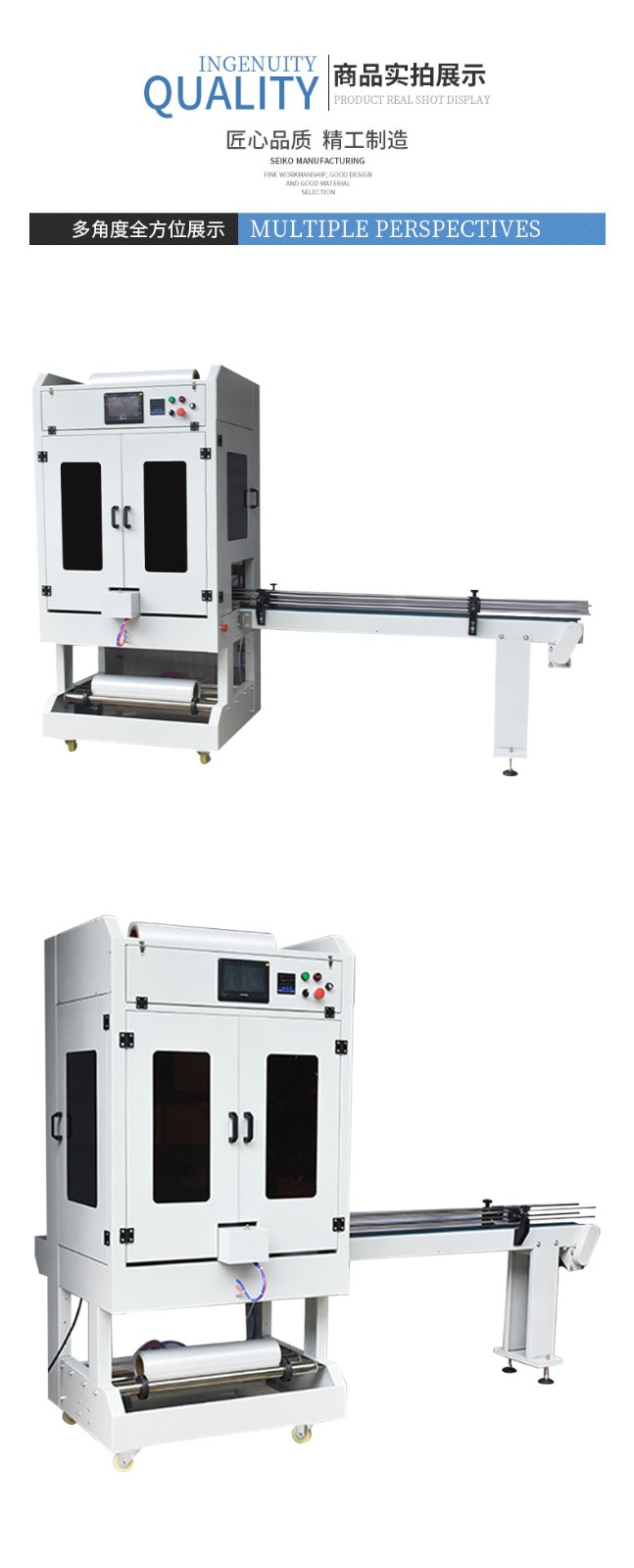 - 高速套膜:具有較高的套膜速度,每分鐘可以完成多件產品的套膜,極大地提高了包裝作業的速度。相比傳統的手工套膜或半自動套膜設備,其效率提升顯著,能夠滿足大規模生產的需求。
