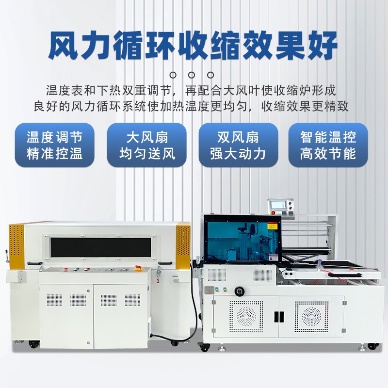 利用薄膜輸送系統(tǒng)將包裝薄膜圍繞產(chǎn)品,然后通過邊封裝置對薄膜的側(cè)邊進(jìn)行密封,形成一個包裹產(chǎn)品的袋子。之后,產(chǎn)品被輸送到熱收縮通道,熱空氣使薄膜收縮并緊緊貼合在產(chǎn)品表面,完成包裝。