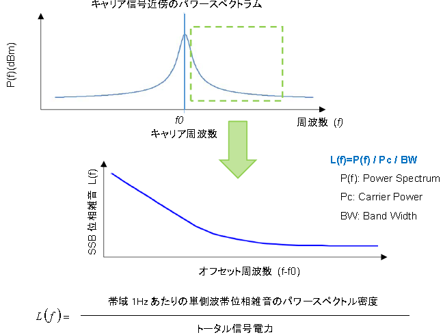 位置(偏移頻率)上的頻率分量表示,值越小,噪聲分量越少的信號越好,通常是由載波功率標準化的單頻帶附近的噪聲表示.