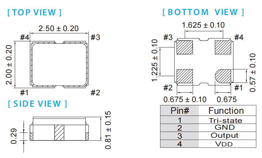 OYKTGLJANF-0.032768,OY,32.768kHz,2520mm,Taitien晶振,OY系列SMD振蕩器,有源晶振,尺寸圖