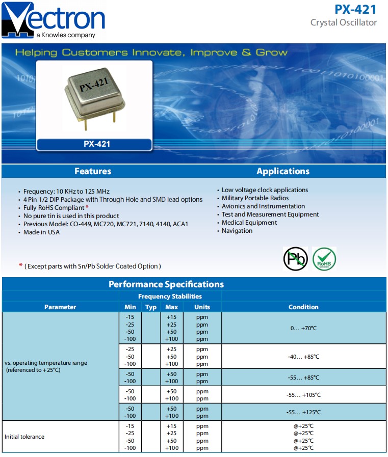 Vectron維管晶振,PX-4210-DAB-FKAB-10M0000000,導航儀6G應用,參數表