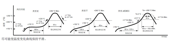 (2)SMD產品回流焊接條件圖用于JEDEC J-STD-020D.01回流條件的耐熱可用性需個別判斷.請聯系我們以便獲取相關信息.